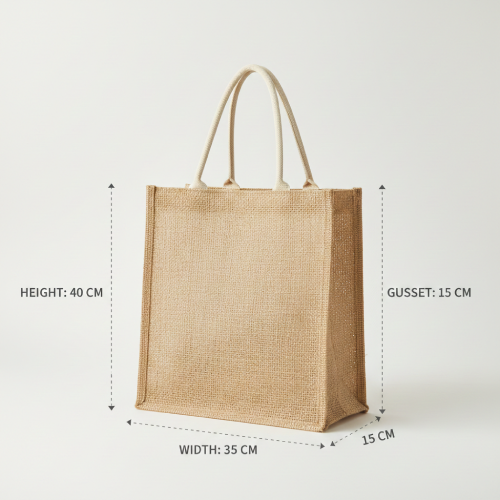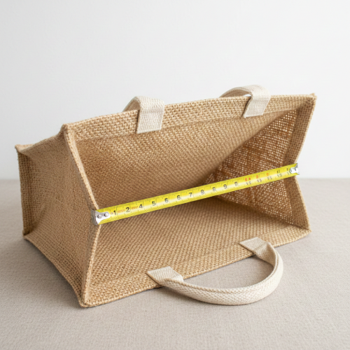 Whether you are designing a gift hamper, a grocery shopper, or a promotional tote, here is our simple, step-by-step guide to measuring a jute bag correctly.